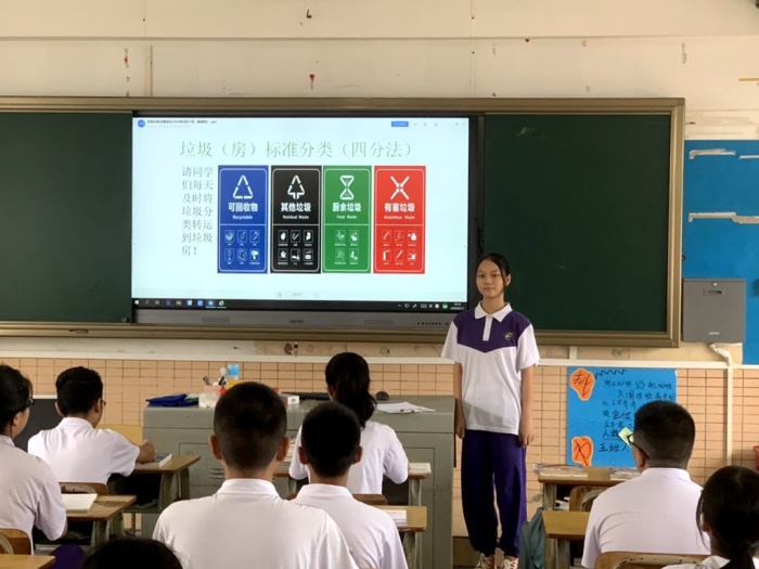 同時,德育處在開學(xué)典禮后分別安排全體師生觀看《“看不見的危險”交通安全第一課》,各班召開《垃圾分類,人人參與》主題班會。