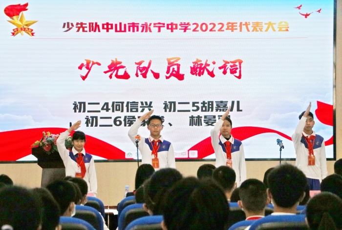 隨后,在洪亮的呼號(hào)和莊嚴(yán)的退旗曲中,少先隊(duì)中山市永寧中學(xué)2022年代表大會(huì)圓滿落幕?! ?/p>
