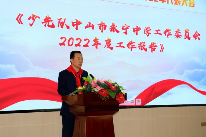 為認(rèn)真貫徹習(xí)近平總書記關(guān)于少年兒童和少先隊(duì)工作的重要論述精神,充分發(fā)揮少先隊(duì)代表大會(huì)的組織優(yōu)勢,增強(qiáng)少先隊(duì)員光榮感,2023年2月15日下午,中山市永寧中學(xué)在學(xué)校報(bào)告廳召開了少先隊(duì)2022年代表大會(huì)。出席本次大會(huì)的領(lǐng)導(dǎo)、嘉賓有:學(xué)校黨支部書記、校長陳清茂(少工委主任)、中山市第二市區(qū)人民檢察院一級(jí)檢察官鄧艷(法治副校長)、永寧社區(qū)黨委委員、少工委主任陳泳茵、陳華梁副校長、宏安中學(xué)總務(wù)主任黃炎標(biāo)、德育處主任戴放良、團(tuán)委書記、大隊(duì)輔導(dǎo)員羅結(jié)晶、家長代表、輔導(dǎo)員教師代表和少先隊(duì)員代表。團(tuán)委副書記陳煥然主持大會(huì)。
