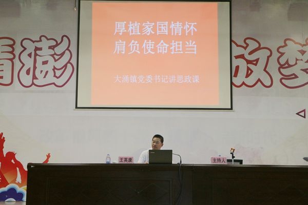 為加強新時代愛國主義教育,推進師德師風(fēng)建設(shè),落實思政課立德樹人的根本任務(wù)。10月14日下午,大涌鎮(zhèn)黨委書記王英康同志到卓山中學(xué)禮堂,講述了以“愛黨、愛國、愛社會主義”為主題的思政課。鎮(zhèn)教體文旅局、鎮(zhèn)教育和體育事務(wù)中心工作人員,全鎮(zhèn)中小學(xué)校長和卓山中學(xué)全體師生共1538人參加。