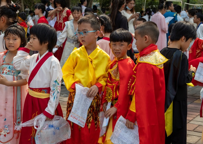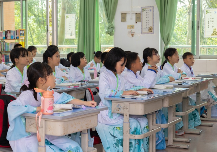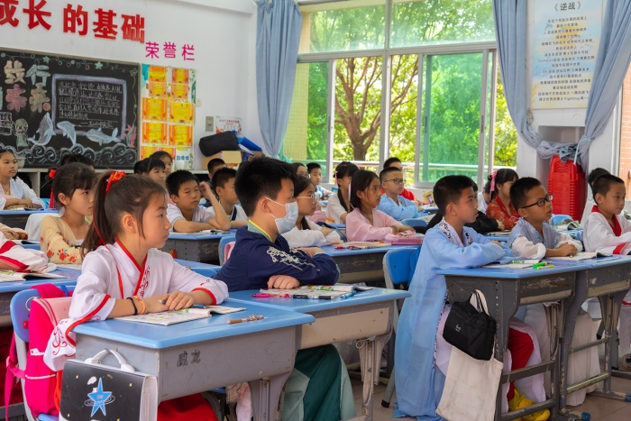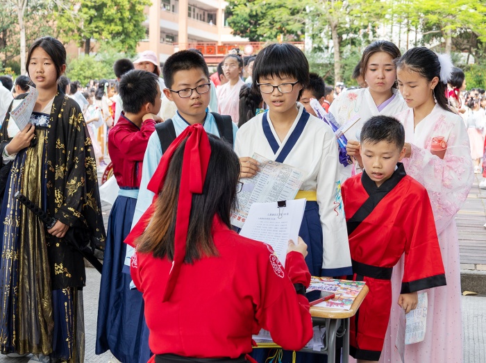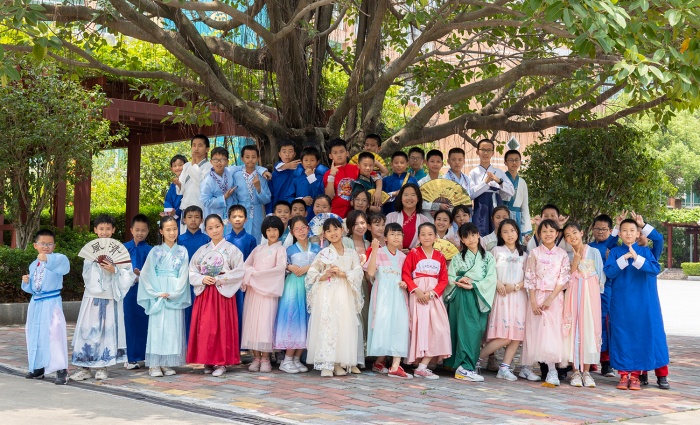 傳統(tǒng)禮節(jié)感師恩,古韻悠然新課程。同學們身穿古衣,感受中華傳統(tǒng)文化的博大精深,從經(jīng)典中汲取民族精神的源頭活水,獲得古圣先賢的智慧之光,培養(yǎng)仁義敦厚的性情。