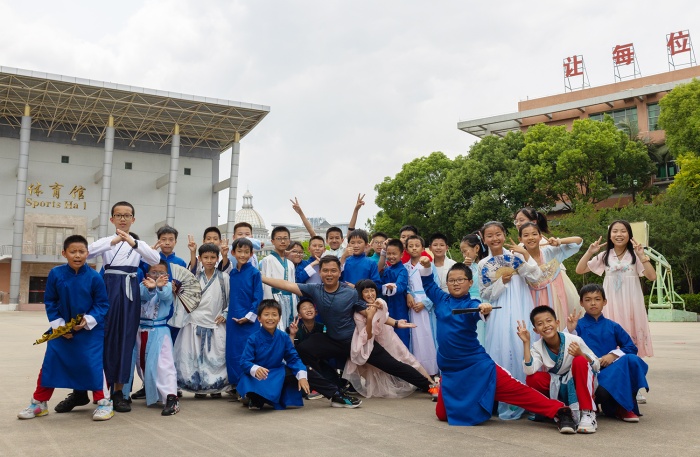 繡華服展活力,悠悠古曲動人心。古樸典雅的曲子回蕩在校園上空,同學們衣袖翻飛、翩若驚鴻,伴著音樂起舞,矯健輕靈的動作顯示出卓雅少年昂揚向上的精神面貌。一首首婉轉(zhuǎn)動聽的古風歌曲,如輕柔的春風在同學們耳畔飄過。偶遇同學,典雅的傳統(tǒng)“揖禮”更增進了同窗情誼。