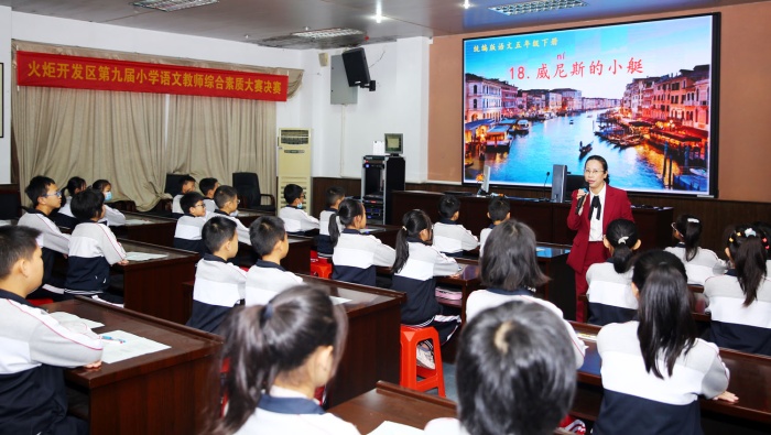 為了提升小學(xué)語文教師綜合素養(yǎng),促進(jìn)教師專業(yè)化發(fā)展,推動(dòng)課堂教學(xué)改革,提高教育教學(xué)質(zhì)量,2021年12月23、24兩日,開發(fā)區(qū)第九屆小學(xué)語文綜合素質(zhì)決賽在中山市卓雅外國語學(xué)校精彩繼續(xù)。來自全區(qū)的9位教師代表參加了本次決賽,全區(qū)小學(xué)語文教師參加了觀摩活動(dòng)。
