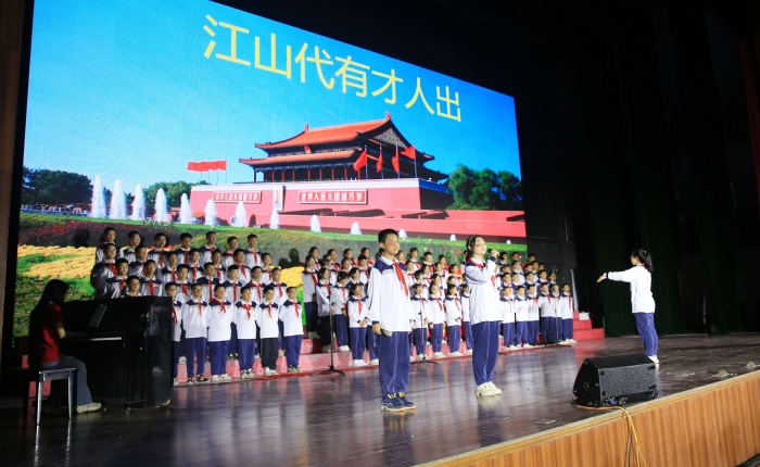 “起來!不愿做奴隸的人們!把我們的血肉,筑成我們新的長城!中華民族到了最危險的時候……”比賽伊始,七、八、九年級分別演唱《義勇軍進(jìn)行曲》,通過集體合唱比拼年級精氣神;隨后各班登臺演唱《歌唱祖國》《萬江》《我和我的祖國》《不忘初心》等9首經(jīng)典紅色歌曲,令人振奮與感動;校朗誦隊朗誦詩歌《中國報告》,深情訴說中國力量;初中部合唱隊還傾情獻(xiàn)唱《四季的問候》,溫暖而治愈……活動最后,全體師生齊唱《歌唱祖國》,深情詮釋初中部全體師生對黨、對祖國、對人民的深深摯愛和款款祝福。
