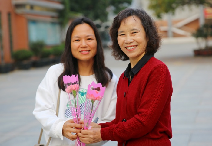 “節(jié)日快樂?!薄白D闾焯扉_心,健康幸?!痹缟掀唿c,卓雅外校副校長李文、畢文龍、李園萍及工會委員們已等候在學(xué)校門口,他們手捧鮮花、面帶微笑,向一早來上班的女教職員工送上節(jié)日的祝福。各工會小組則利用課間時間,向辛勤工作的女教職員工等送上鮮花、蛋糕、購物卡等節(jié)日禮物,并在精心布置的“節(jié)日拱門”前合影留念。
