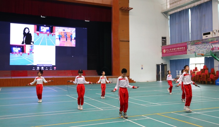活動(dòng)中,兩校學(xué)生通過(guò)網(wǎng)絡(luò)媒介的方式使用電子跳繩進(jìn)行跳繩比賽?!邦A(yù)備、跳!”繩影翩躚,腳下生風(fēng),輕如燕飛,賽場(chǎng)上呈現(xiàn)出一片歡騰的景象。在交流活動(dòng)中,兩校學(xué)生舒展了身心,提高了技能,品嘗了跳繩運(yùn)動(dòng)帶來(lái)的快樂(lè),感受到為集體爭(zhēng)光的責(zé)任感、使命感。