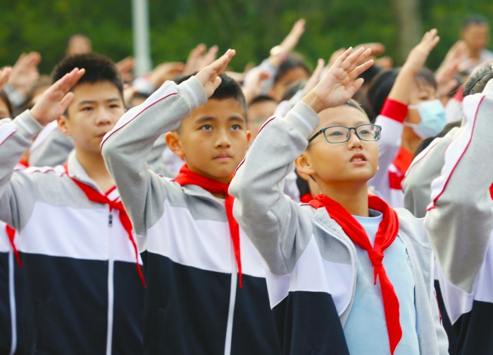 “準(zhǔn)備著:為共產(chǎn)主義事業(yè)而奮斗!”“時刻準(zhǔn)備著!”活動最后,少工委總輔導(dǎo)員楊文娟帶領(lǐng)全體隊(duì)員一起呼號,在隊(duì)員們鏗鏘有力的呼號聲中,小學(xué)部“不負(fù)華年,為中華之崛起而讀書”主題活動啟動儀式圓滿結(jié)束。