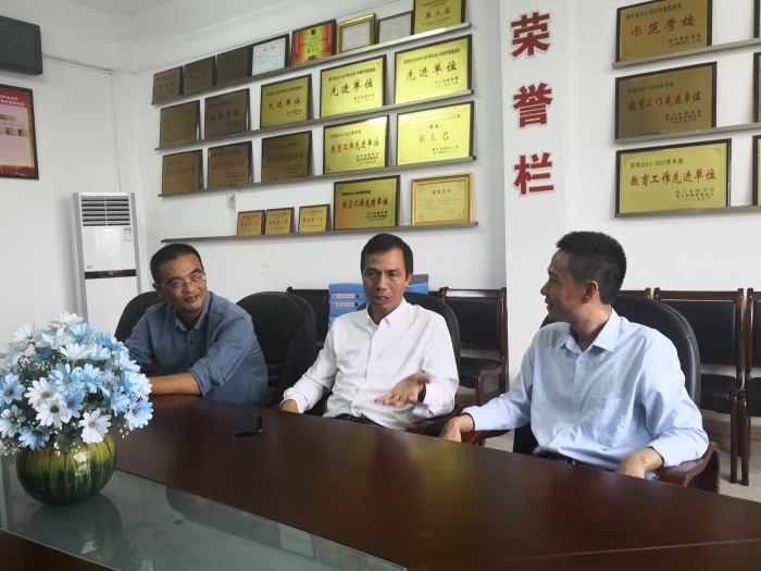 中山特校探訪團隊一行得到?jīng)G洲鎮(zhèn)中心小學(xué)總部林俊偉校長、汫洲鎮(zhèn)中心小學(xué)本部的林偉源副校長及錢建生副校長的熱情接待。在總部會議室,林俊偉校長對中山特校教師真情支教、幫扶山區(qū)的做法表示感謝,對成海麗老師不怕困難、情系山區(qū)教育的情懷給予了贊賞和衷心感激,充分肯定了成海麗老師支教以來的工作成效,并對她計劃于下周為全鎮(zhèn)骨干教師開展的融合教育宣導(dǎo)講座表示了熱切期待。會上,兩地教師就普校融合教育現(xiàn)狀和發(fā)展前景、后疫情時期學(xué)生心理健康教育、教育教學(xué)管理及理念等方面進行了座談交流,大家各抒己見,分享探討各自的教育智慧與經(jīng)驗,共話山區(qū)教育及融合教育發(fā)展。