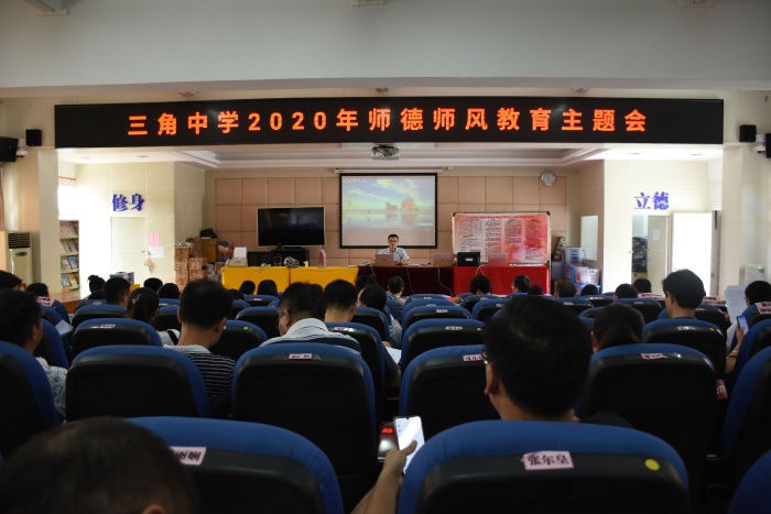 7月17日下午,三角中學(xué)在立德樓報(bào)告廳召開師德師風(fēng)專題教育會暨2019—2020學(xué)年度第二學(xué)期期末總結(jié),德育處主任覃子湘老師主持會議。