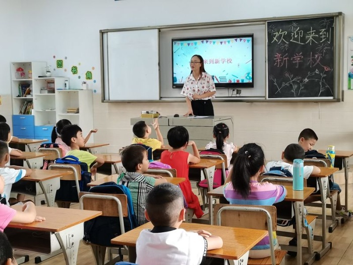 隨后,學生回到教室由班主任給新生進行新生入學教育、校園安全教育以及宣傳防疫知識。最后,一年級新生進行隊列訓練,主要是訓練學生在做廣播體操、大課間活動以及上體育課時的隊列要求。
