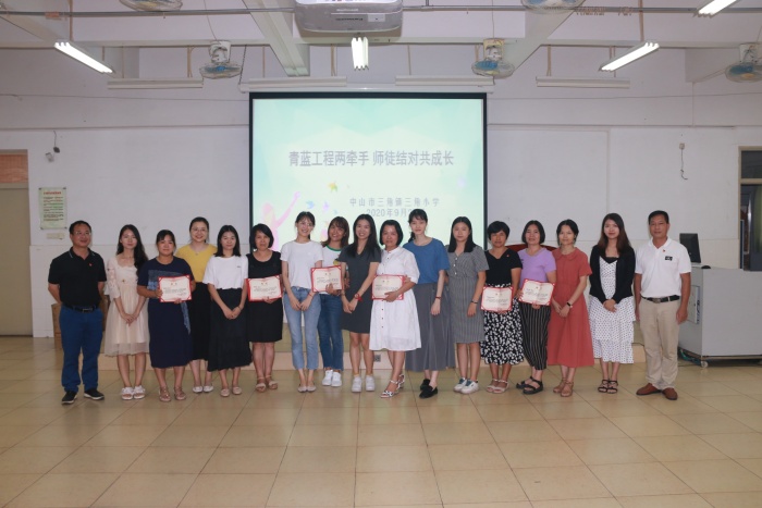 活動(dòng)的最后,陳見(jiàn)洪校長(zhǎng)和王輝副校長(zhǎng)為指導(dǎo)教師們頒發(fā)了聘書(shū)并與師徒合影留念。