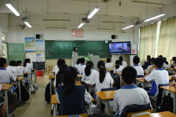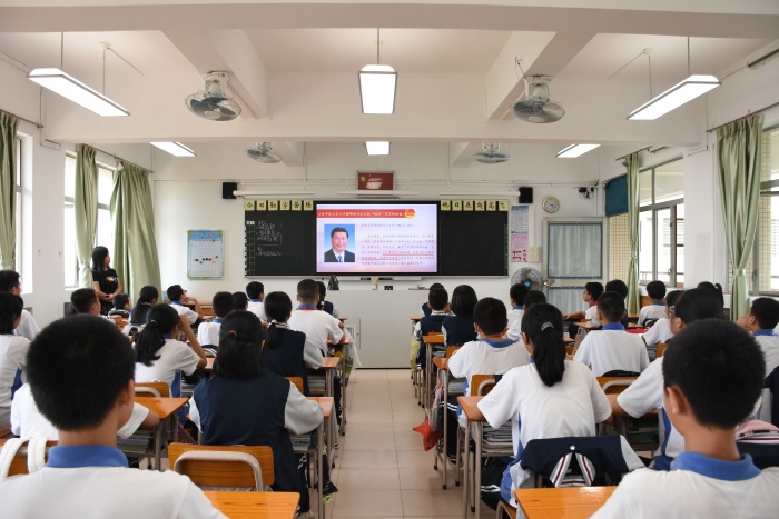 在中華人民共和國成立71周年即將來臨之際,三角中學(xué)開展了形式豐富的祝福祖國校園活動(dòng),9月28日下午三角中學(xué)35個(gè)班級(jí)開展“祖國在我心中 立志為國奉獻(xiàn) ”主題班會(huì)。班會(huì)在《我驕傲,我是中國人》激昂的詩歌朗誦中進(jìn)入高潮。