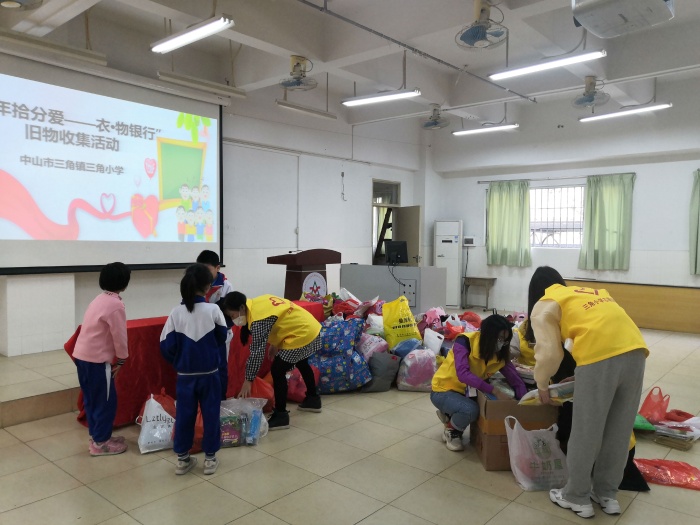 為積極響應中山市少工委倡議,弘揚愛心傳播精神,提高垃圾分類、舊物化寶的環(huán)保意識、生態(tài)意識,引領廣大青少年做力所能及的環(huán)保行動,1月6日下午,三角小學組織開展“青年拾分愛——衣?物銀行”舊物收集活動,為困難人群送上溫暖的問候。