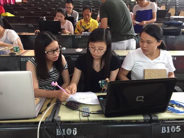 為提高區(qū)中小學(xué)開展創(chuàng)客教育的實(shí)施能力,培養(yǎng)優(yōu)秀創(chuàng)客教育教師,進(jìn)一步推進(jìn)創(chuàng)客教育在全區(qū)中小學(xué)的普及與開展,順德區(qū)教育發(fā)展中心舉辦了第二期創(chuàng)客教育種子教師培訓(xùn),分別于7月4、5日和10、11日在大良順峰中學(xué)和勒流職業(yè)技術(shù)學(xué)校開班,全區(qū)共有200多名中小學(xué)教師前來參與。培訓(xùn)的主要內(nèi)容是開源硬件和米思齊基礎(chǔ)入門。