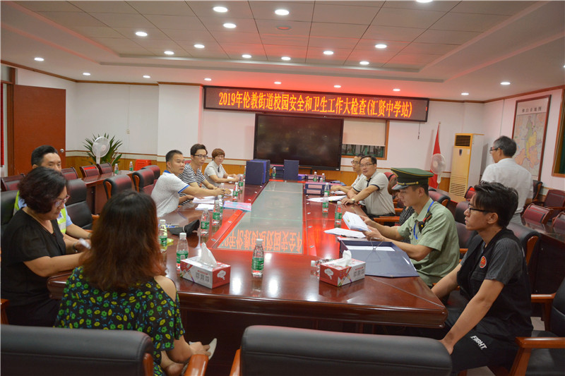 2019年6月11日上午,順德區(qū)倫教街道校園安全和衛(wèi)生工作檢查組蒞臨匯賢中學檢查指導工作。