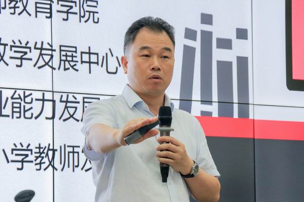 授牌儀式后,廣東省中小學(xué)教師培訓(xùn)專家工作室主持人、肇慶學(xué)院教師教育學(xué)院院長肖起清教授為大家?guī)怼督處煂I(yè)發(fā)展的目標(biāo)與路徑》主題講座。肖院長從教師職業(yè)的國際比較、廣東省教師教育情況比較、教師專業(yè)發(fā)展的條件、教師專業(yè)發(fā)展的目標(biāo)、教師專業(yè)發(fā)展的路徑四個著眼點,主張教師要有自己的學(xué)科體系、工作體系和社會體系,著眼于自身專業(yè)發(fā)展路徑,通過學(xué)歷提升、專業(yè)研修、實踐研究、綜合發(fā)展、實踐發(fā)展,奮力成就為專家型教師。