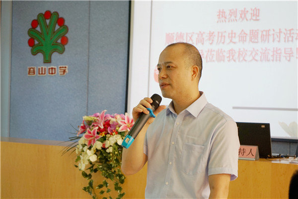順德區(qū)教育發(fā)展中心教研室余逸主任向參加活動的老師介紹了順德區(qū)高考成果及備考經(jīng)驗。提出“新時代、新變化、又多又快,必然帶來更多關(guān)注,搶先關(guān)注高考命題,給高考備考帶來更多的生機(jī)。”他進(jìn)一步提出,如何應(yīng)對變化、如何教、如何學(xué)、如何考、如何命題需要進(jìn)一步優(yōu)化。同時也希望全區(qū)歷史科組張通過假期閱讀和研究活動,帶動全區(qū)歷史老師進(jìn)行高效命題與備考。