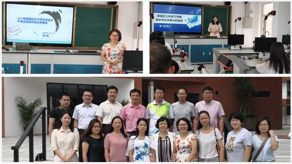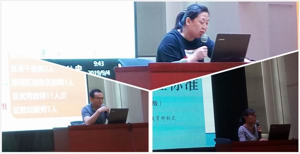 傅紅霞、崔利敏老師做報(bào)告及初中教研組長合影