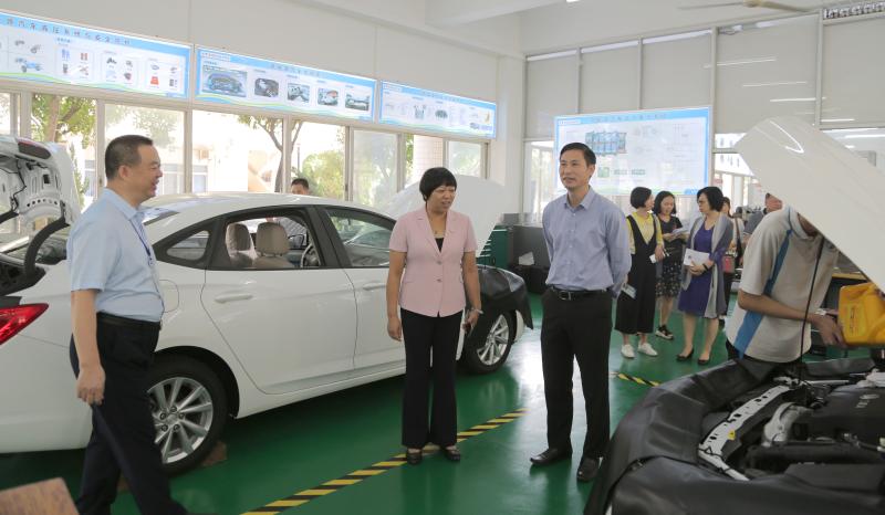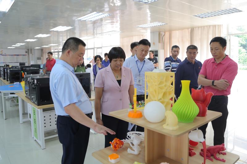 在李??⌒iL(zhǎng)等行政人員的陪同下,一行人先后參觀了勒流職校汽修實(shí)訓(xùn)中心、領(lǐng)悅財(cái)稅實(shí)訓(xùn)中心、智能制造中心、3D打印與公共實(shí)訓(xùn)中心和電商創(chuàng)業(yè)中心。勒流職校以地方產(chǎn)業(yè)為支撐,將企業(yè)引進(jìn)學(xué)校,讓學(xué)生在學(xué)?!肮ぷ鳌钡摹皩?shí)打?qū)崱钡男F蠛献饔四J降玫搅思钨e們的高度贊揚(yáng)。