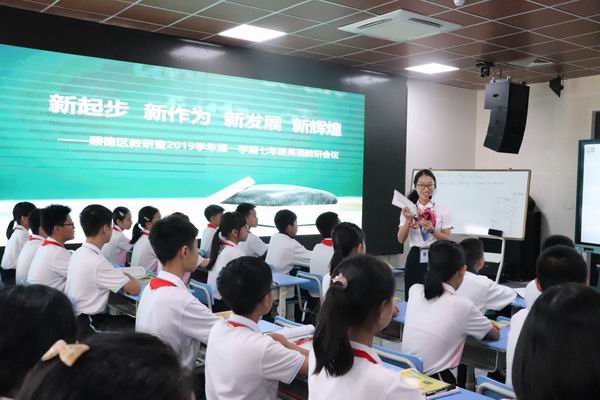 2019年10月15日下午,2019學(xué)年第一學(xué)期七年級英語教研會議在成美初級中學(xué)順利召開。順德區(qū)初中英語教研員杜曉曦老師、大良街道教育局教育教學(xué)研究室鄭錦松老師,以及各鎮(zhèn)(街道)的初中英語骨干教師等參與了本次研討會。此次會議還邀請到惠州市教科院英語兼職教研員廖瑩瑩老師作主題講座。