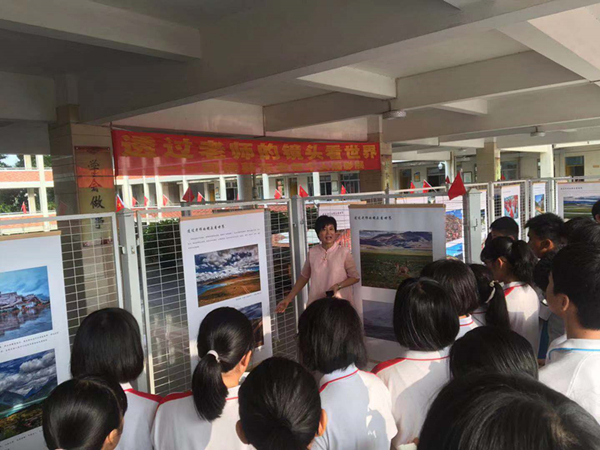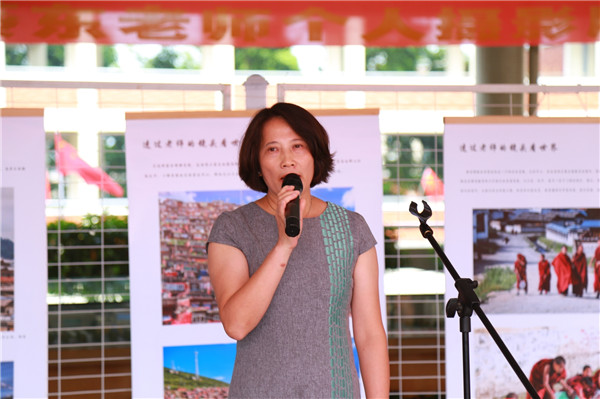 開幕式上,司徒葵東副校長指出此次攝影展的作品是她從教30年間旅游拍下的祖國美麗風光和景物,旨在激發(fā)學生愛國之情和報效祖國之志,同時為學生思考世界、創(chuàng)造世界打開一扇夢想之門。