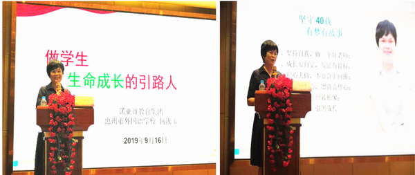 開班儀式結(jié)束后,惠州市外國語學校校長何汝玉老師帶來了《做學生生命成長的引路人》專題講座。她通過講述自己的個人成長以及從教40載中3個典型的案例:挽救一名自殺的女孩、妥善處理班級的偷盜事件、校園衛(wèi)生整治工作,向?qū)W員展示了一名德育工作者的情懷,啟迪班主任應(yīng)該用愛喚醒孩子的美好人性。