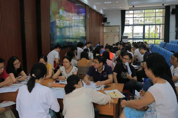 為進(jìn)一步推動(dòng)我區(qū)高中歷史課程改革,落實(shí)學(xué)科核心素養(yǎng),提高課堂教學(xué)效率,探索新課標(biāo)背景下高三歷史一輪復(fù)習(xí)備考的策略與方法,凸顯“歷史敘事”在復(fù)習(xí)中的運(yùn)用,2019年10月8日,順德區(qū)教育發(fā)展中心于順德一中舉辦了順德區(qū)2020屆高三歷史一輪復(fù)習(xí)研討活動(dòng),全區(qū)高三歷史教師、高一高二歷史備課組長(zhǎng)及高一高二歷史骨干教師等100余人參加?;顒?dòng)由區(qū)教育發(fā)展中心教研室余逸主任主持。