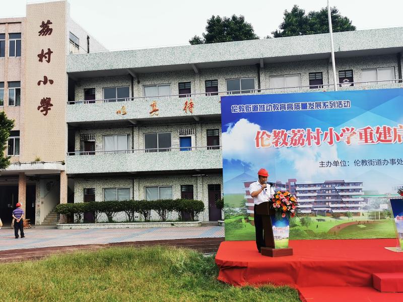 重建啟動(dòng)儀式上,荔村小學(xué)校長郭智鷹向與會(huì)來賓介紹荔村小學(xué)的辦學(xué)歷史和辦學(xué)業(yè)績,字里行間表達(dá)了政府和港澳鄉(xiāng)親情系教系,興教助學(xué)壯舉的感激之情。街道黨工委書記盧德全發(fā)表了熱情洋溢的致辭。他表示倫教堅(jiān)持教育“一把手工程”,主動(dòng)履行發(fā)展教育的職責(zé),奮力推進(jìn)十億教育建設(shè)工程,推動(dòng)教育高質(zhì)量發(fā)展;進(jìn)一步深化教育改革,激發(fā)辦學(xué)活力,打造倫教教育品牌,大力提升教育質(zhì)量。他還表示倫教將動(dòng)員全社會(huì)力量,關(guān)注支持教育事業(yè)發(fā)展,以教育高質(zhì)量發(fā)展助推城市高質(zhì)量發(fā)展。他要求相關(guān)部門通力合作,按計(jì)劃、高標(biāo)準(zhǔn)、快速度地推進(jìn)工程建設(shè),確保新校園如期建成并投入使用。他希望學(xué)校在傳承學(xué)校優(yōu)良傳統(tǒng)的基礎(chǔ)上,重新定位,科學(xué)謀劃,將荔村小學(xué)打造成順德區(qū)內(nèi)標(biāo)桿小學(xué)。