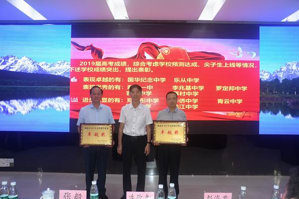張毅主任為獲得2019年高考卓越獎(jiǎng)的學(xué)校頒獎(jiǎng)