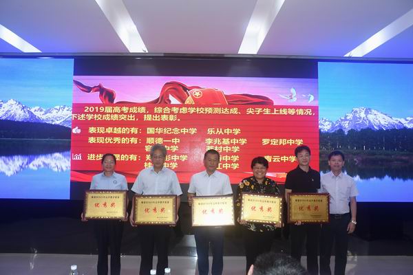 隨后,在熱烈的掌聲中,大會(huì)為2019年教學(xué)質(zhì)量突出的12所學(xué)校頒發(fā)獎(jiǎng)牌,予以表彰。其中,榮獲卓越獎(jiǎng)的有國華紀(jì)念中學(xué)和樂從中學(xué);榮獲優(yōu)秀獎(jiǎng)的有順德一中、李兆基中學(xué)、羅定邦中學(xué)、容山中學(xué)、莘村中學(xué);榮獲進(jìn)步獎(jiǎng)的有鄭裕彤中學(xué)、華僑中學(xué)、青云中學(xué)、桂洲中學(xué)、龍江中學(xué)。