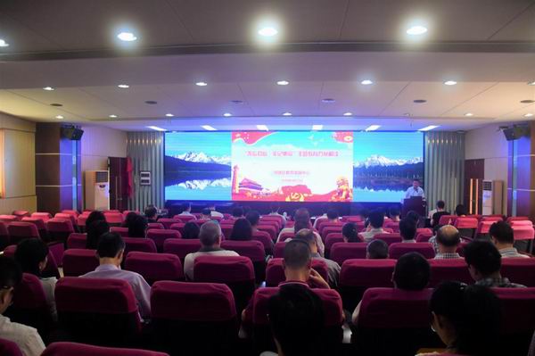 會(huì)議的第三項(xiàng)議程,全體教職工觀看“不忘初心、牢記使命”主題教育先進(jìn)事跡報(bào)告會(huì)電視錄像片。