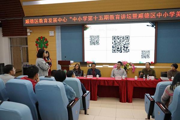 最后,由順德區(qū)美術(shù)教研員王育群老師主持了藝術(shù)教育沙龍研討,楊少弟、陳筆銳等幾位優(yōu)秀美術(shù)老師現(xiàn)場為老師們解疑答惑,分享了自己的教育智慧。