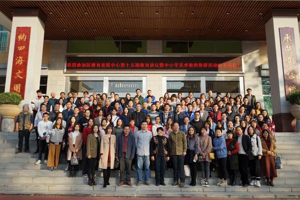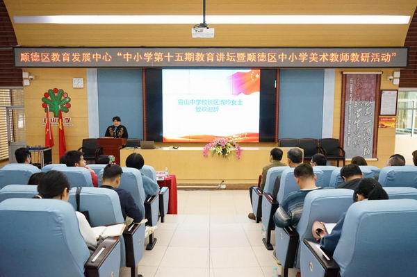 2019年12月27日下午,容山中學(xué)集賢樓報告廳濟(jì)濟(jì)一堂,來自全區(qū)中小學(xué)220多名美術(shù)教師以及區(qū)教育發(fā)展中心教師發(fā)展研究室主任唐信焱、副主任吳海堅,區(qū)美術(shù)教研員王育群老師齊聚這里,參加了一場別開生面的美術(shù)教研活動?;顒佑身樀聟^(qū)教育發(fā)展中心、順德區(qū)名師工作室建設(shè)項目管理辦公室主辦,順德區(qū)容山中學(xué)、順德區(qū)劉磊名師工作室承辦,容山中學(xué)侯柏羽老師擔(dān)任活動主持。