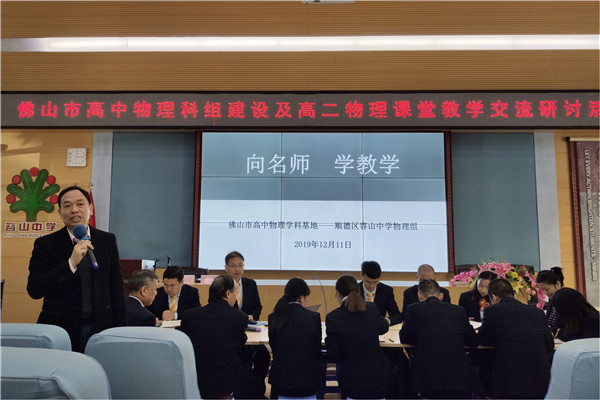 為更好地落實(shí)“立德樹人”的根本任務(wù),主動(dòng)適應(yīng)我國教育教學(xué)及高考改革的新趨勢(shì),實(shí)現(xiàn)新課標(biāo)教學(xué)目標(biāo)在課堂教學(xué)中的落地,切實(shí)提升學(xué)生的核心素養(yǎng),2019年12月11日,佛山市高中物理科組建設(shè)及高二物理課堂教學(xué)交流研討活動(dòng)于我校隆重舉行。佛山市教育局教研室朱建平主任、云浮市教育局教研室黃國穎主任、廣東教育出版社朱夢(mèng)華編輯以及佛山市、云浮市各校物理學(xué)科教師200多人參加了本次活動(dòng)。