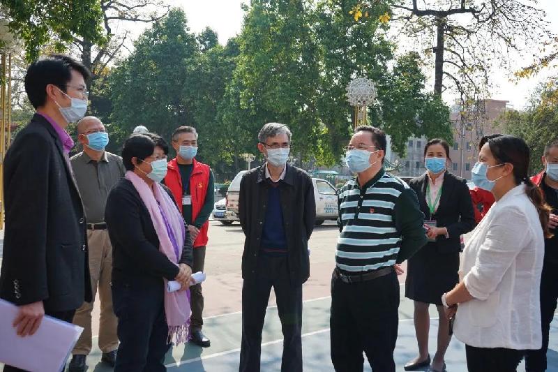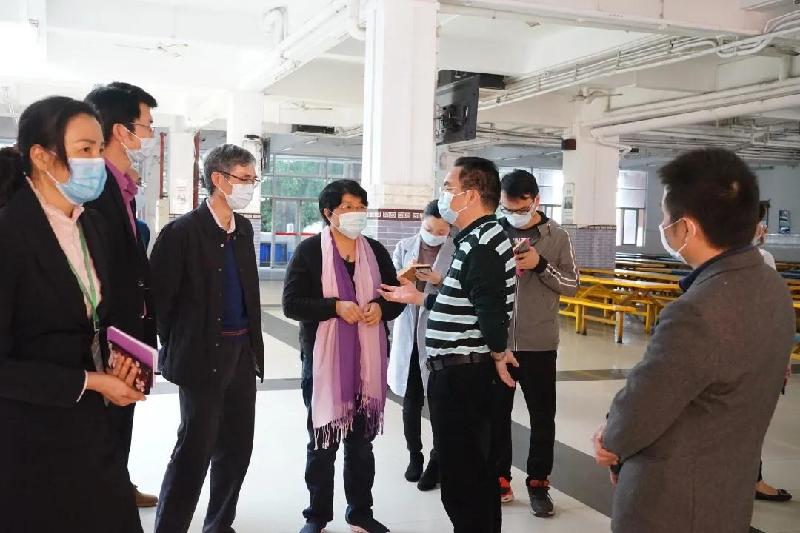 順德區(qū)副區(qū)長(zhǎng)、容桂街道黨工委書(shū)記劉國(guó)興(右3)等領(lǐng)導(dǎo)到容山中學(xué)檢查疫情防控工作