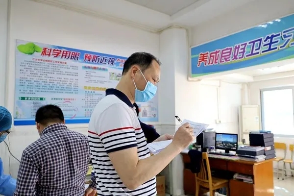 檢查組認(rèn)真記錄學(xué)校的防控情況
