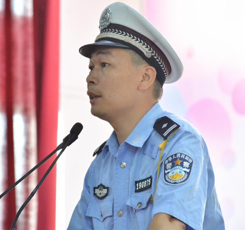 散學(xué)禮第一項(xiàng)議程:均安法制宣傳員伍詩挺警官做法制安全講座。