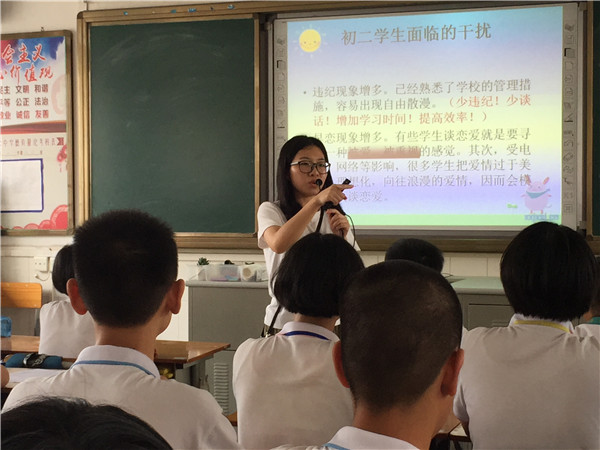 初一新生在上心育主題班會課