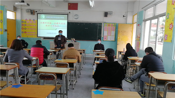 接著,教務(wù)處周忠紅主任布置了具體的“停課不停教、停課不停學(xué)”教學(xué)安排、黃云副主任也提出了相應(yīng)的工作建議。各參會(huì)人員對(duì)疫情之下的網(wǎng)絡(luò)教學(xué)也發(fā)表了各自的意見(jiàn),并研究了學(xué)部、班級(jí)、專業(yè)、學(xué)科等微信群組建,學(xué)習(xí)任務(wù)發(fā)布等工作細(xì)節(jié)。