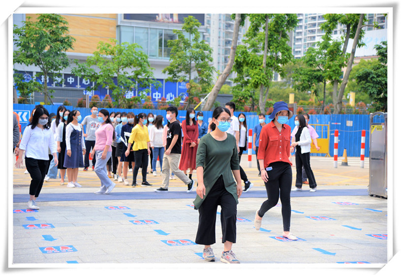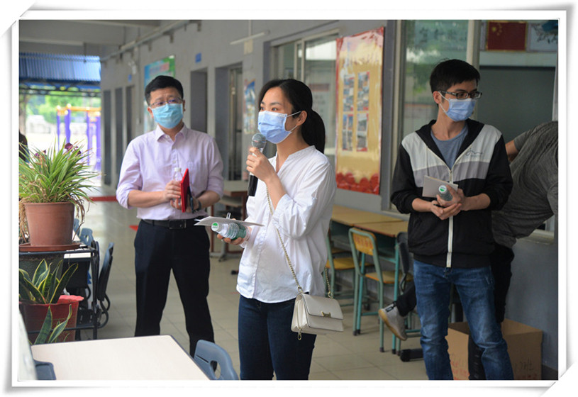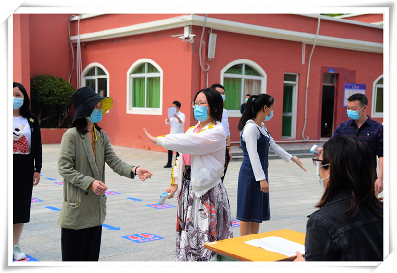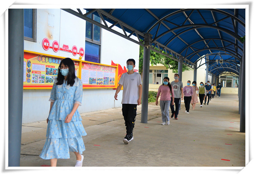 12名工作人員對學(xué)生進行體溫檢測登記,并按照學(xué)號引導(dǎo)其按照指定路線有序進入教室。