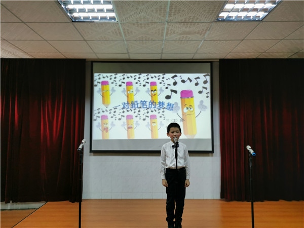參賽節(jié)目是學(xué)生與指導(dǎo)老師精心篩選,有春風(fēng)點(diǎn)綴夢(mèng)之足跡的,如“我想”、“我想長(zhǎng)大”、“彩色的夢(mèng)”、“一支鉛筆的夢(mèng)想”等;有夏日奏出感恩強(qiáng)音的,如“我驕傲,我是中國(guó)人”、“老師,我愛(ài)您”、“感謝”、“我愛(ài)我的祖國(guó)”等;有秋葉藏著收獲喜悅的,如“秋天的雨”、“聽(tīng)聽(tīng),秋的聲音”、“秋之美”等;還有冬雪涌動(dòng)生命氣息的,如“生命!生命!”、“白樺”等;還有中華傳統(tǒng)經(jīng)典文學(xué)等。內(nèi)容的精彩不如學(xué)生現(xiàn)場(chǎng)演繹精彩,在主持人宣布開(kāi)始后,節(jié)目精彩呈現(xiàn),報(bào)告廳不時(shí)傳來(lái)陣陣的喝彩聲和熱烈的掌聲。先由一年級(jí)童音傳儒的“生命!生命”開(kāi)始,臺(tái)下的師生無(wú)不欣賞她小小年紀(jì)就有如此非凡表現(xiàn)力;接下來(lái)的同學(xué)表現(xiàn)出驚人的朗誦水平,全場(chǎng)學(xué)生都坐不住了,時(shí)而不時(shí)在引起了下面觀眾一陣歡呼,甚至站起來(lái)一起為他們打氣。臺(tái)上激情高昂的朗誦、傳神的動(dòng)作與臺(tái)下火熱的氛圍,形成“童音軟儒傳風(fēng)骨,康樂(lè)之星發(fā)強(qiáng)音”的多彩畫(huà)卷。