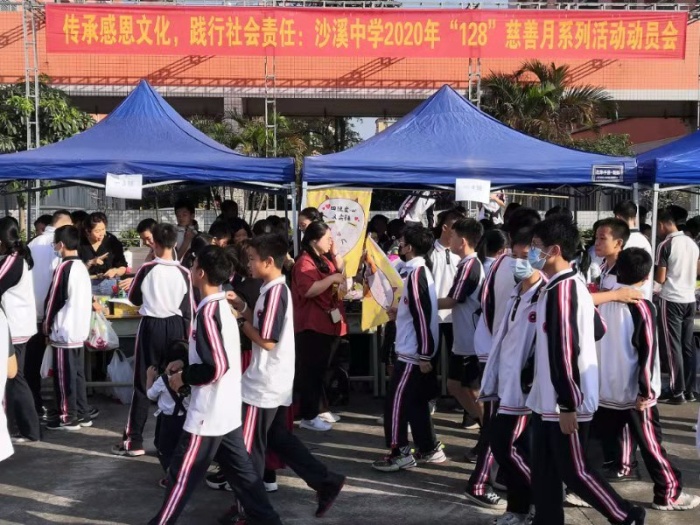 為積極響應(yīng)沙溪鎮(zhèn)“12·8”慈善籌款活動的號召,弘揚樂善好施、崇文重教的傳統(tǒng)美德,11月27日下午,沙溪中學(xué)在學(xué)校操場舉行“傳承感恩文化,踐行社會責任”愛心義賣活動,沙溪中學(xué)全體師生和部分學(xué)生家長義工參與了本次活動。