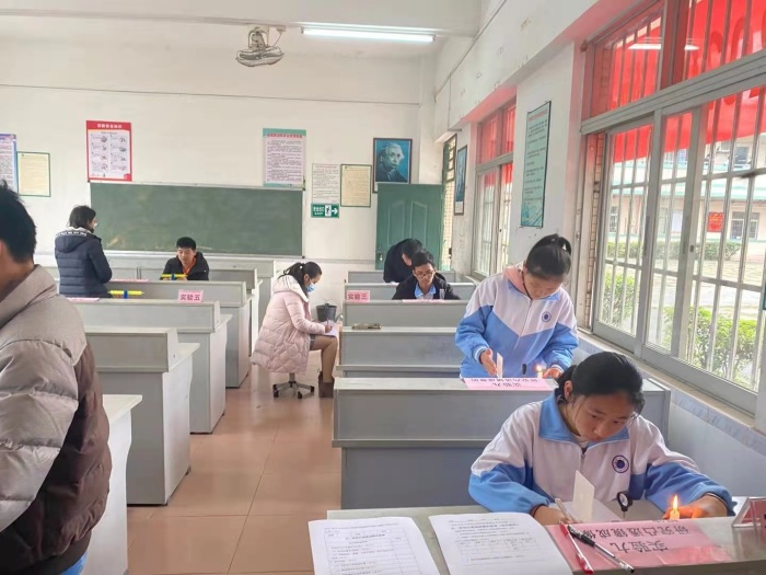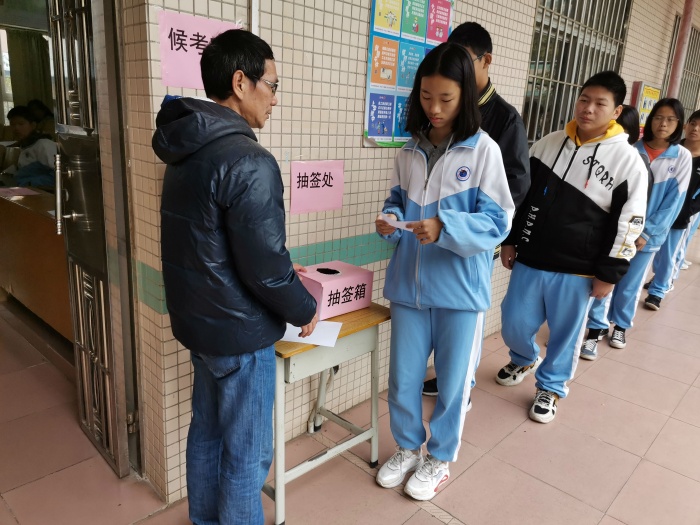 上午8點(diǎn)10分由考務(wù)員到班通知第一場學(xué)生24人到多媒體準(zhǔn)備室抽簽,抽簽后,學(xué)生利用5分鐘時(shí)間了解實(shí)驗(yàn)題操作的要求、步驟、注意事項(xiàng)等。8點(diǎn)15分學(xué)生有序地進(jìn)入操作考核室,8點(diǎn)20分整計(jì)時(shí)員宣布考核開始,神舟學(xué)校六位監(jiān)考教師收卷當(dāng)場評分,評分結(jié)束后,接著進(jìn)第下一場學(xué)生的操作考核。10點(diǎn)左右,神灣鎮(zhèn)教育事務(wù)指導(dǎo)中心吳惠欣老師、神灣中學(xué)物理老師陳木奇來到神舟學(xué)校巡查,監(jiān)控了初三(2)班的第四場考核過程,包括學(xué)生的抽簽,學(xué)生實(shí)驗(yàn)操作和物理教師對學(xué)生操作考核打分情況及整體學(xué)生的操作考核水平都進(jìn)行了監(jiān)督和了解。巡查組對每位監(jiān)考教師每人監(jiān)考兩位同學(xué)操作,考核的學(xué)生沉著操作,對實(shí)驗(yàn)考核工作表示滿意,同時(shí)也向?qū)W校提出具體的改進(jìn)建議。