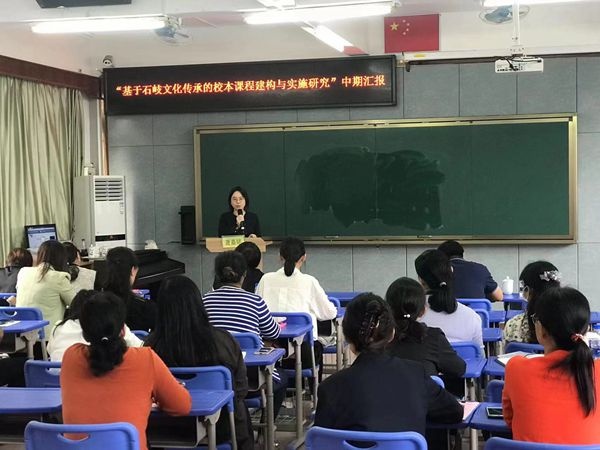 接著是兩個(gè)課題的主持人分別進(jìn)行中期研究匯報(bào)。鄭結(jié)霞校長(zhǎng)主持“基于石岐文化傳承的校本課程建構(gòu)與實(shí)施研究”這個(gè)課題。她從課題研究概述、前期研究基礎(chǔ)、中期研究狀況和后期研究思路四個(gè)方面進(jìn)行了詳盡匯報(bào),既展示了課題研究的研究成果,更展示了她的管理情懷。田雅老師主持“思維發(fā)展與提升視角下小學(xué)中段童話(huà)整本書(shū)閱讀教學(xué)的實(shí)踐研究”課題,她人從課題研究背景、研究思路、階段性研究成果、研究效果、問(wèn)題展望五個(gè)方面匯報(bào)了課題進(jìn)展,提出了課題研究的困惑。