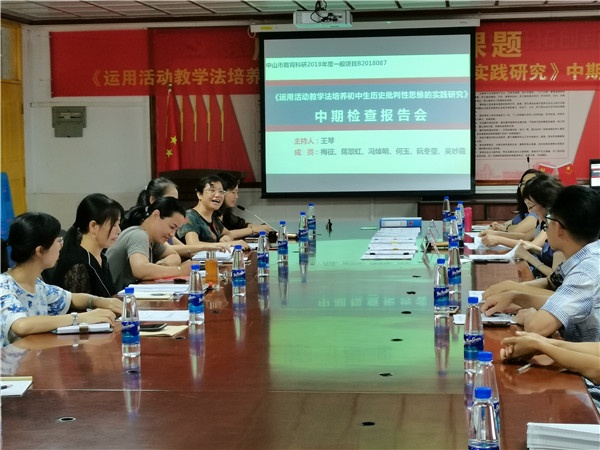 9月8日下午,啟發(fā)中學(xué)舉行歷史市級(jí)立項(xiàng)課題《運(yùn)用活動(dòng)教學(xué)法培養(yǎng)初中生歷史批判性思維的實(shí)踐研究》中期檢查報(bào)告會(huì)。參加本次報(bào)告會(huì)的有中山市教研室歷史教研員、廣東省特級(jí)教師、正高級(jí)教師、廣東省歷史學(xué)科帶頭人樓衛(wèi)琴老師,石岐區(qū)教學(xué)研究主任陳再玲老師,中山市初中歷史學(xué)科帶頭人、中山市骨干教師梁玉萍老師,啟發(fā)中學(xué)祝玉珍副校長(zhǎng),教導(dǎo)主任鄧小斐,以及課題組全體成員。