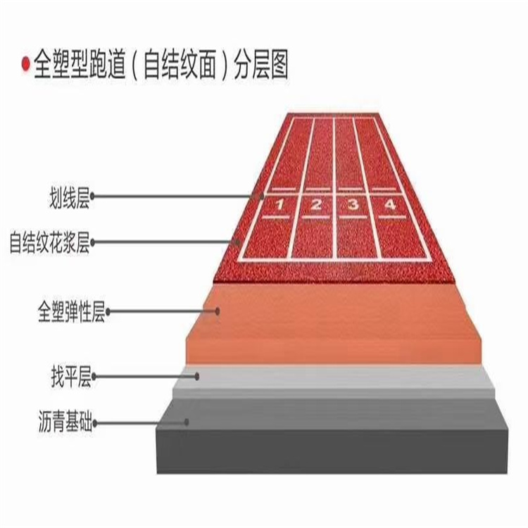 自結(jié)紋"工藝是特種聚氨酯純膠漿,通過化學(xué)反應(yīng)形成的聚氨脂共聚物,在表結(jié)狀態(tài)下自動生成凹凸均勻的紋理,來達到一定的摩察系數(shù),滿足防濕滑等指標。自結(jié)紋無顆粒塑膠跑道在全國為何會如此受廣大工程商、使用者的喜愛,歸于這個新型工藝產(chǎn)品的表面更耐磨、更美觀、不掉粒等優(yōu)越性。