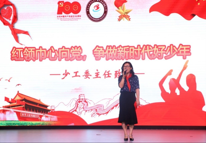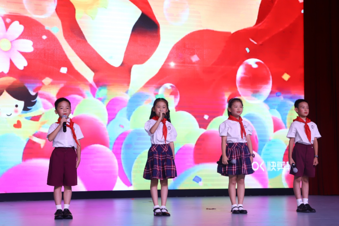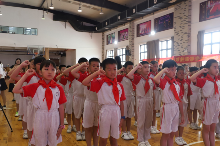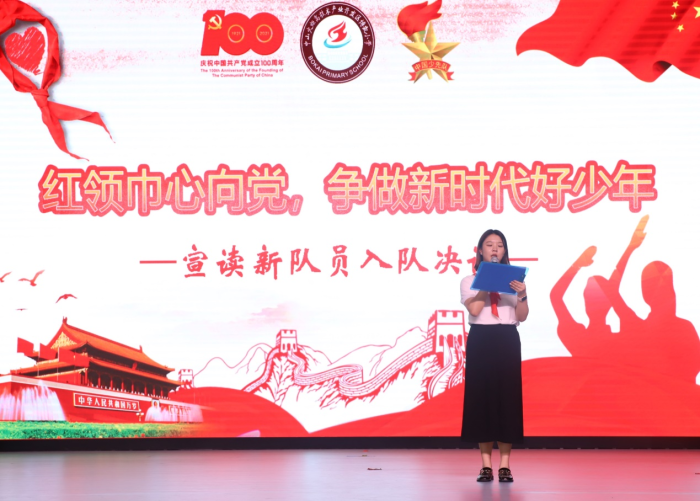 隨后,一5中隊黃政浩、二1中隊管晨羽、二6中隊李宥汐、三9中隊謝澤辰4位少先隊代表深情地朗誦了詩歌《心中的紅領(lǐng)巾》,一5中隊藍天晴隊員用甜美的歌聲誦唱了一首《南湖的小木船》,表達了新時代少先隊員高舉隊旗跟黨走,立志成長為社會主義合格建設(shè)者和接班人的信心和決心。最后,少先隊總輔導(dǎo)員羅嘉立老師的領(lǐng)誓和呼號下,全體新隊員表現(xiàn)出了“準(zhǔn)備著,為共產(chǎn)主義事業(yè)而奮斗”的決心。