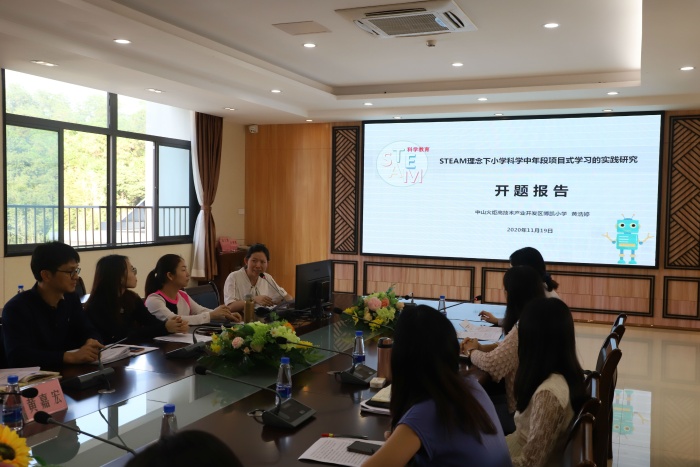 會(huì)上,開發(fā)區(qū)博凱小學(xué)幾個(gè)課題主持人先后作開題報(bào)告,介紹課題研究方案。黃浩婷老師向大家介紹了課題《STEAM理念下小學(xué)科學(xué)中年段項(xiàng)目式學(xué)習(xí)的實(shí)踐研究》的研究意義、研究現(xiàn)狀、研究目標(biāo)、研究?jī)?nèi)容、主要?jiǎng)?chuàng)新之處、研究方法、研究計(jì)劃、預(yù)期研究成果等內(nèi)容。