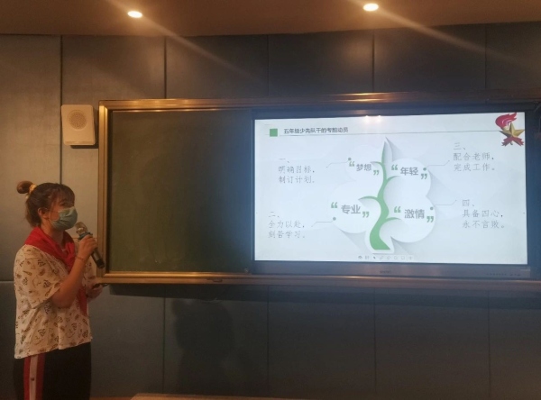 大隊(duì)輔導(dǎo)員羅嘉立老師希望隊(duì)干們能保持積極向上的心態(tài),從小學(xué)先鋒,長(zhǎng)大做先鋒。