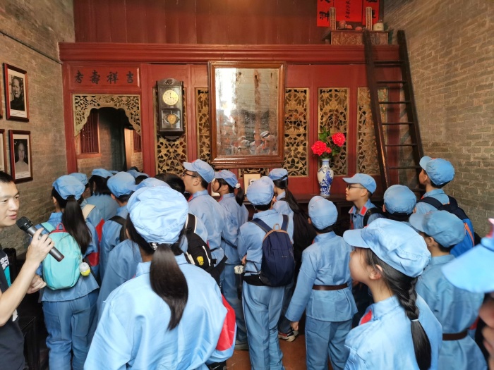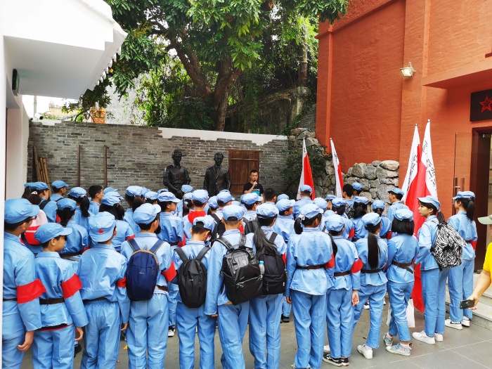 4月25日,天公作美,風(fēng)和日麗、碧空如洗。中山火炬高技術(shù)產(chǎn)業(yè)開發(fā)區(qū)第一小學(xué)六年級(4)班在家委的精心組織下,全班51個親子家庭齊聚一堂,出發(fā)前往中山沙溪鎮(zhèn)明亭村參觀申明亭革命史跡館和揚子江故居,開展以“踏尋紅色足跡,共慶建黨100周年”為主題的親子研學(xué)活動。